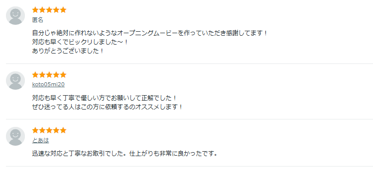つまりココナラなら、高品質な結婚式オープニングムービー制作を格安価格で依頼できるわけですね。