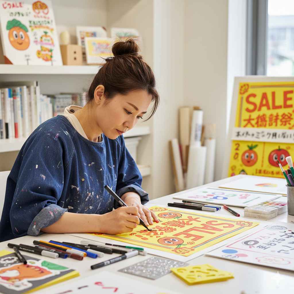 デジタル制作でありながら、温かみのある「手書きPOP」のデザインに特化しています。