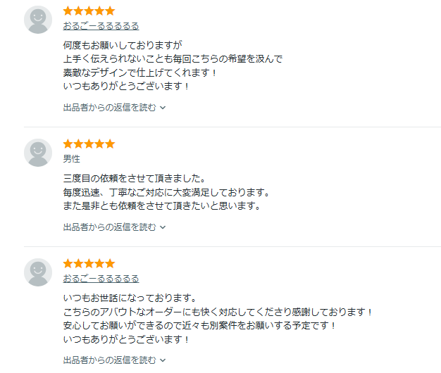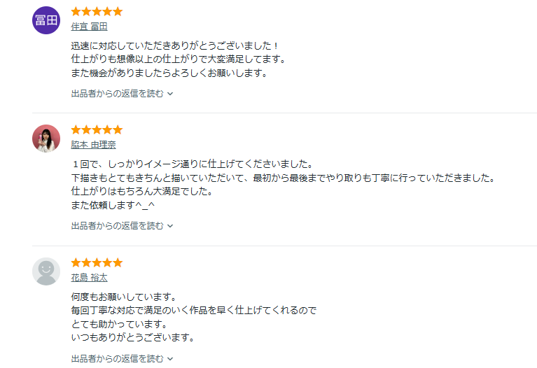 また、「やり取りも丁寧」という口コミも多く、ユーザーの信頼度も高いです。