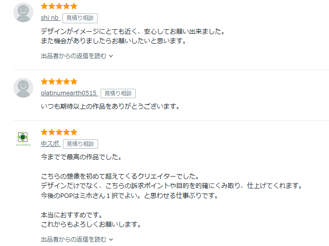 さきほど紹介したポップ作成の人気サービス上位出品の評判をまとめました。