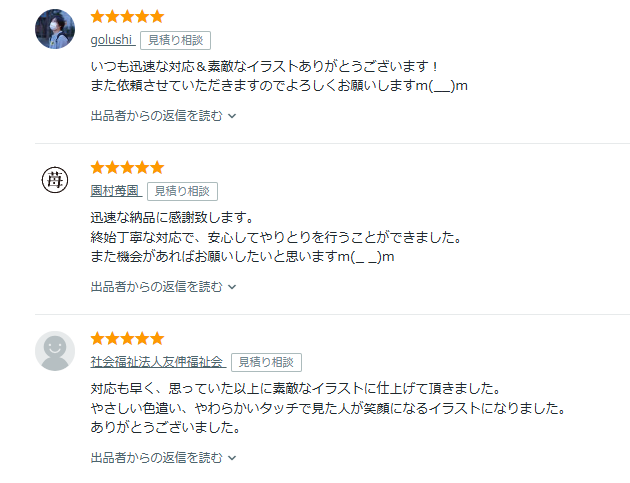 「思っていた以上に素敵なイラスト」という口コミからも、低価格ながらも満足度の高いクオリティを提供していることがわかります。