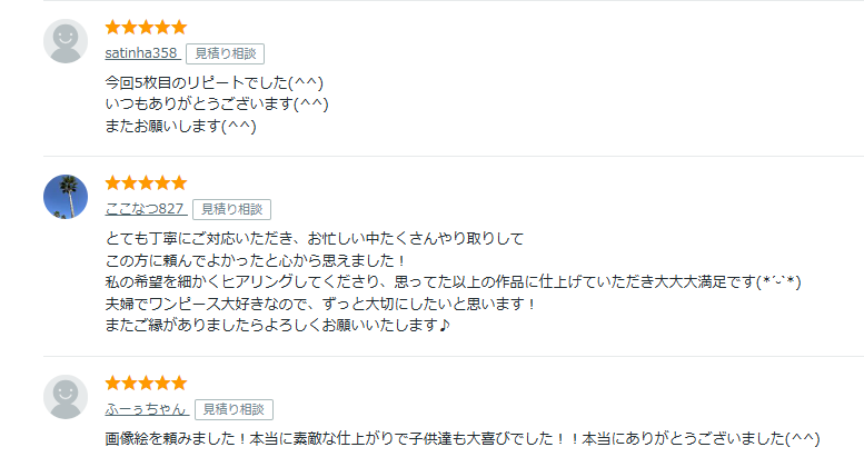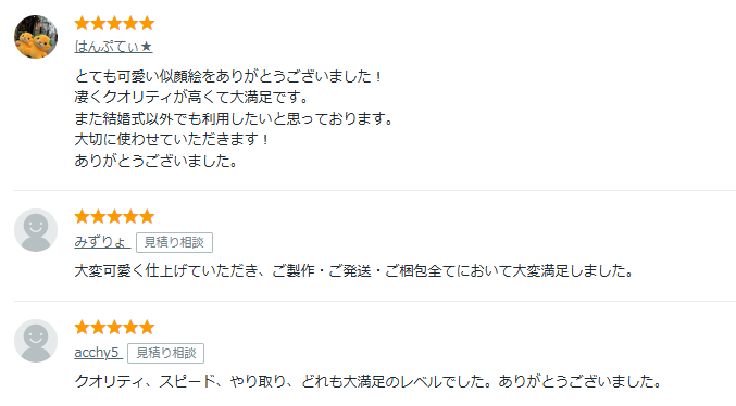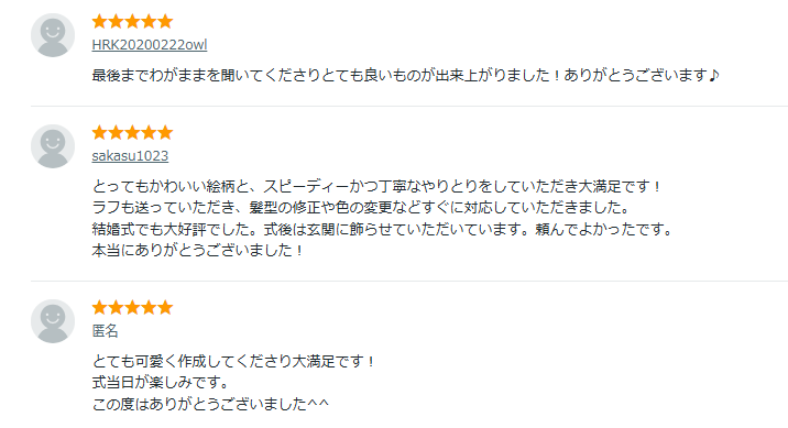 口コミでは「対応がスピーディーだった」「すごく似ていて嬉しい」と、対応力とクオリティに満足する声が多数!